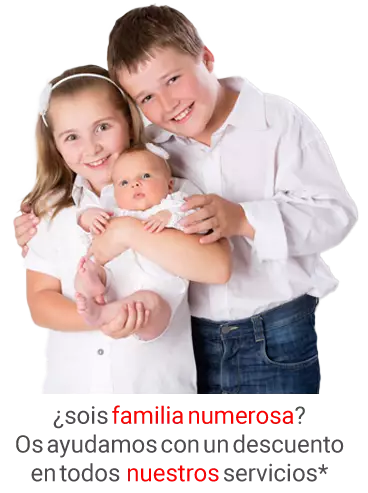 Además tenemos descuento en los servicios que nosotros prestamos para Familias numerosas y Familias de personas con Síndrome de Down (no aplicable si no prestamos nosotros el servicio)